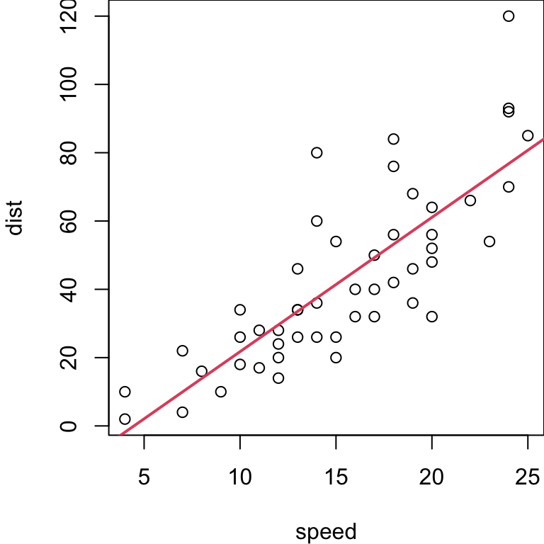 lm(formula = dist ~ speed)