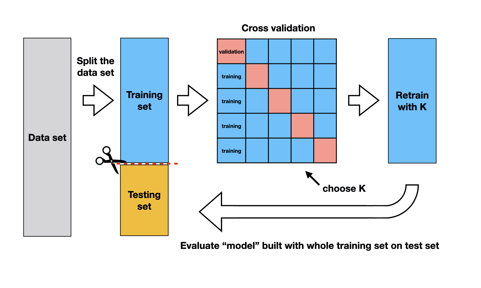 As before the best choice for the number of nearest neighbours to choose from will be determined by cross-validation (CV)