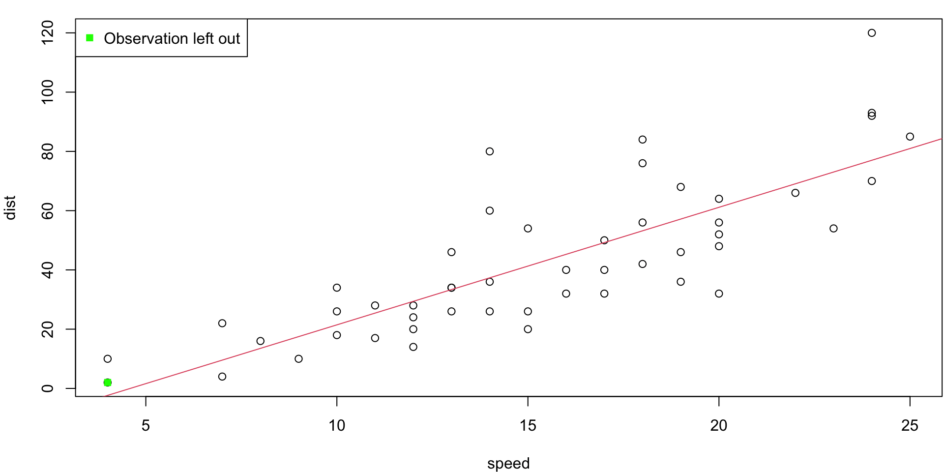We can then estimate the MSE of the model using \[CV_{(n)} = \frac{1}{n} \sum_{i=1}^n MSE_i\]