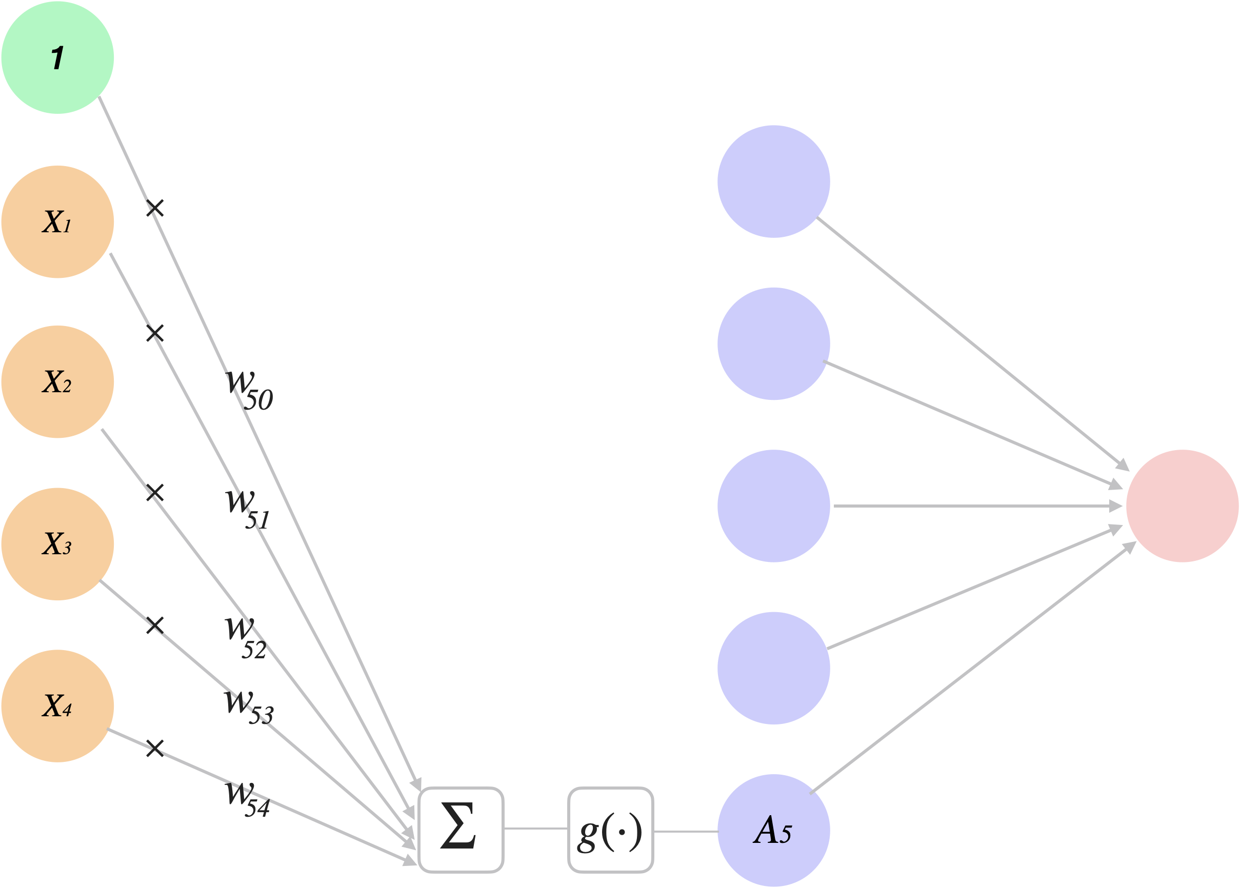 A_k = h_k(X) = g(w_{k0} + \sum_{j=1}^p w_{kj}X_j)