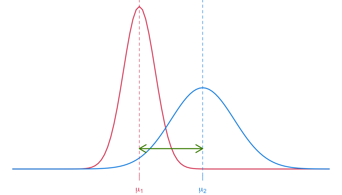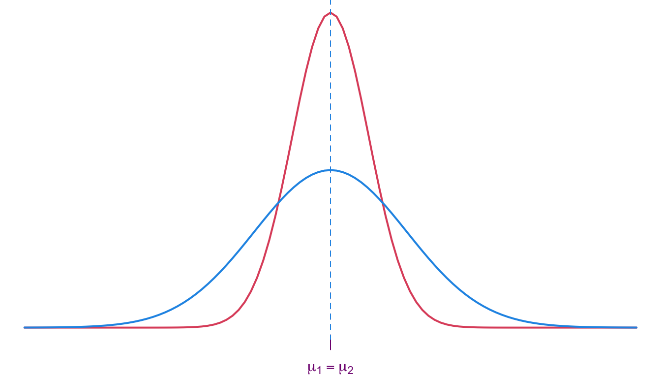 If it is safe to assume \(\sigma^2_1 = \sigma^2_2\), we can carry out the pooled\(t\)-test. We therefore assume Group 1 \(\sim N(\mu_1, \sigma^2)\) and Group 2 \(\sim N(\mu_2, \sigma^2)\).